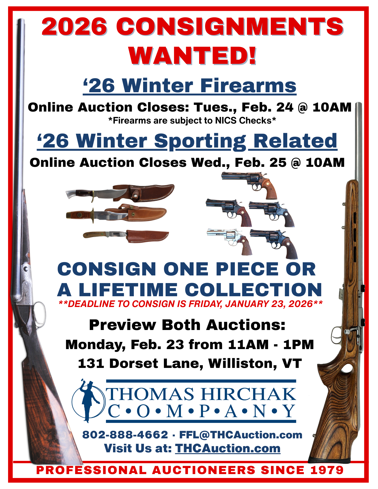 Winter Firearms and Winter Sporting Related Auctions coming up in 2026!