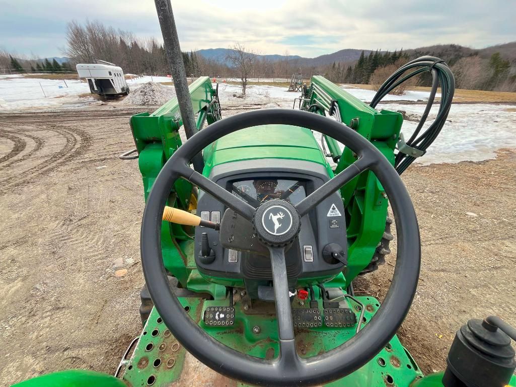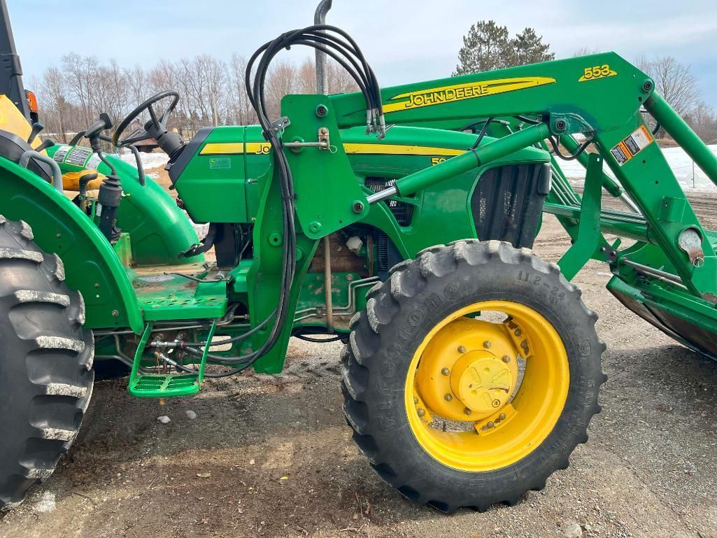 Details: 2200 hrs.; VIN LV5065M160146; 3L; 65hp; 16 spd PowrReverser transmission; diesel; ROPS; 3PH; PTO; 4WD **4WD does not currently operate; needs front differential**; 6' John Deere Quick Detach Bucket; 2917lb lift capacity; runs & drives