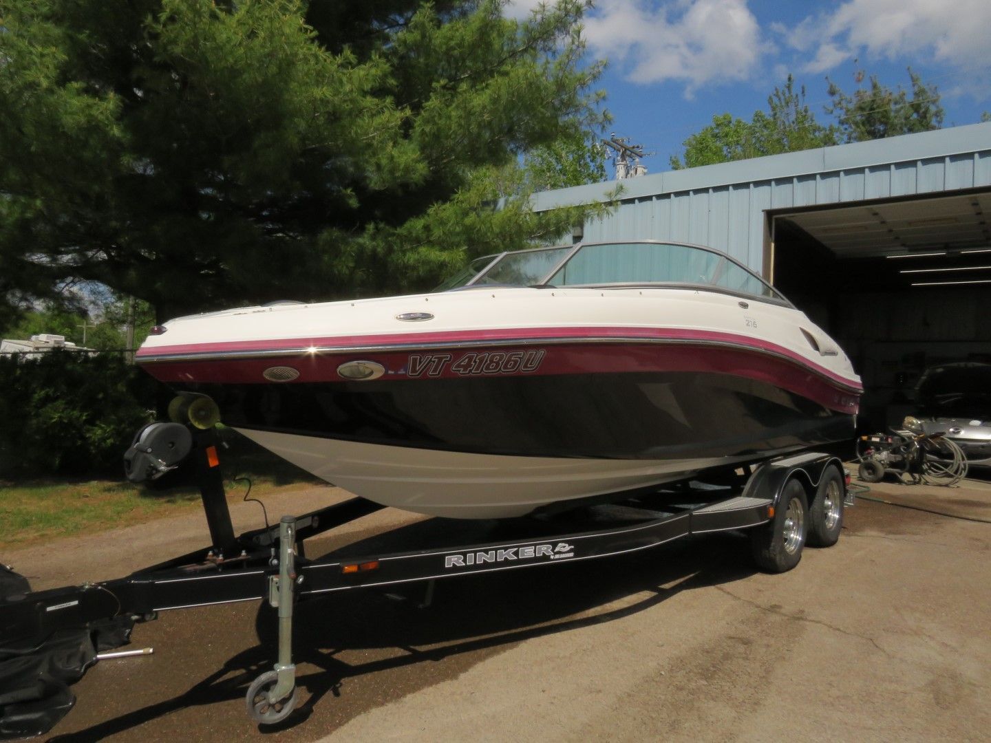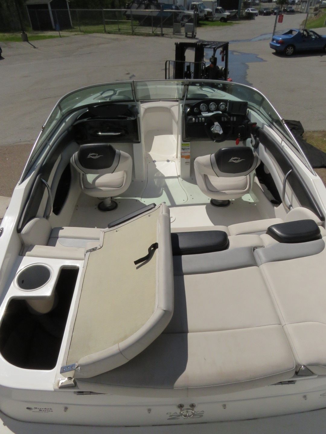 A modern, modular pontoon boat offering customizable seating and storage options. Perfect for leisurely cruises or adventurous excursions. - 2013 Rinker Captiva 216 Boat